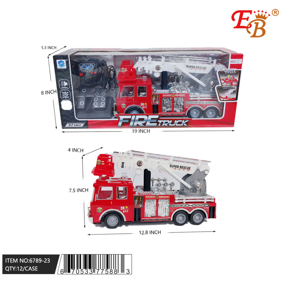Camion de pompiers télécommandé avec lumière et son 12/2/6PC/CS jouet camion de pompiers