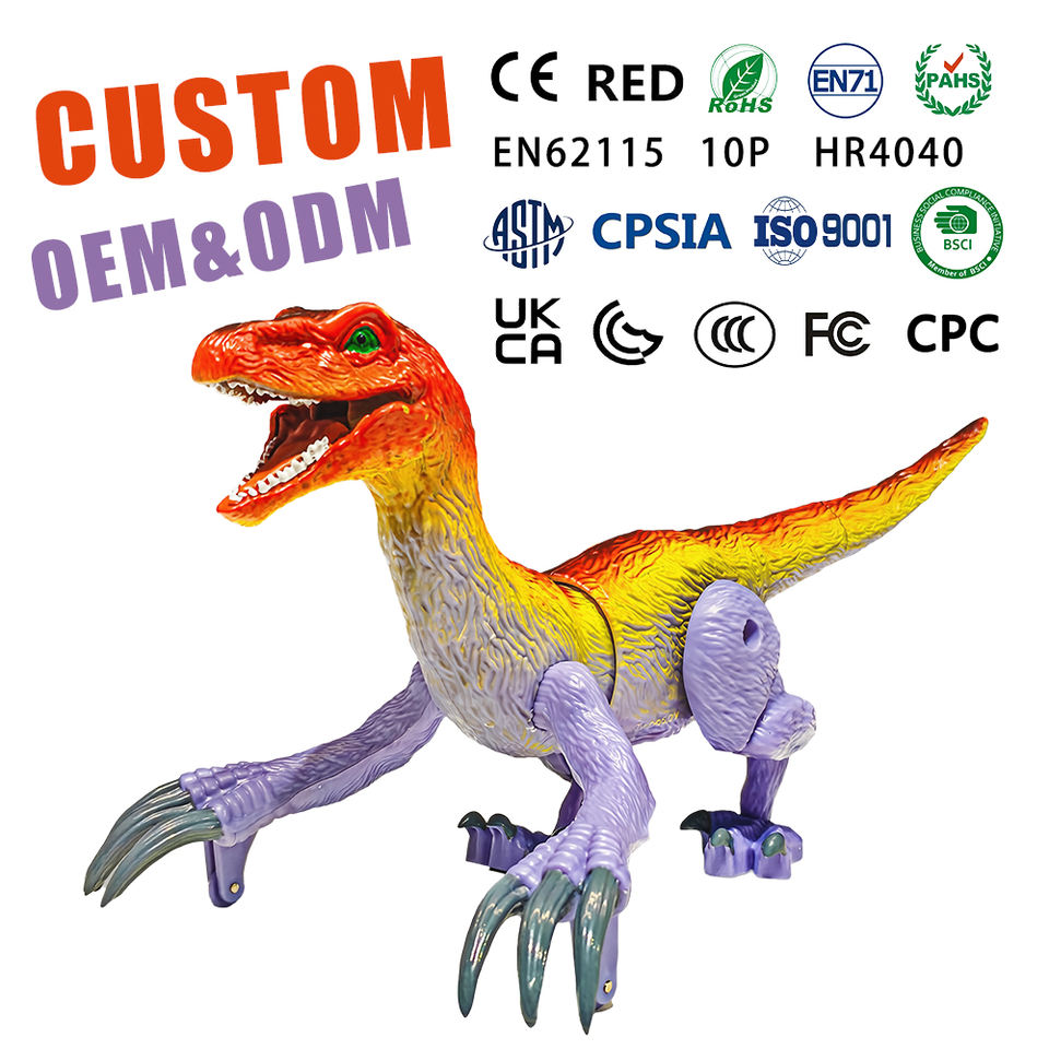 Dinosaure électrique télécommandé en plastique pour enfants, jouet RC 2,4 GHz, Velociraptor avec yeux 3D, tête oscillante, sons de rugissement, prêt à l'emploi