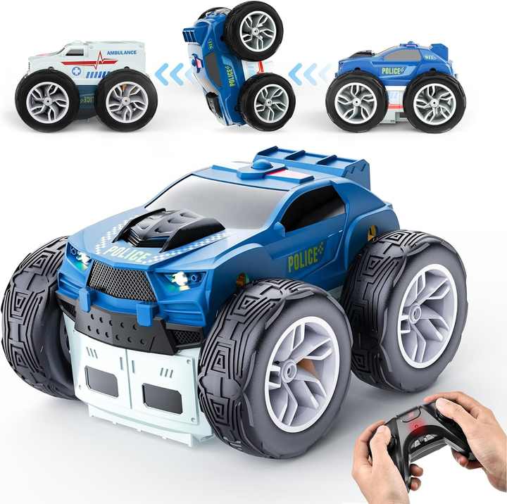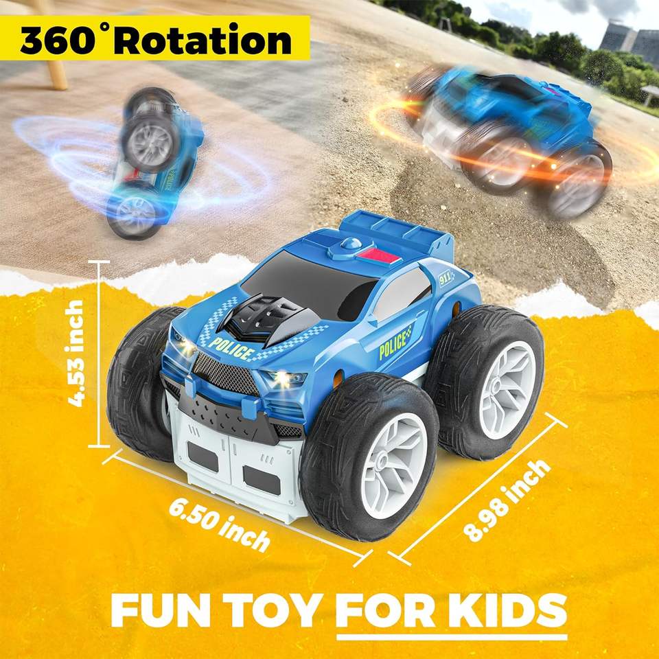 Voiture de police et d'ambulance télécommandée 2 en 1 Voiture de cascade RC double face avec 360 Flip Spinning Toy RC Drift Car