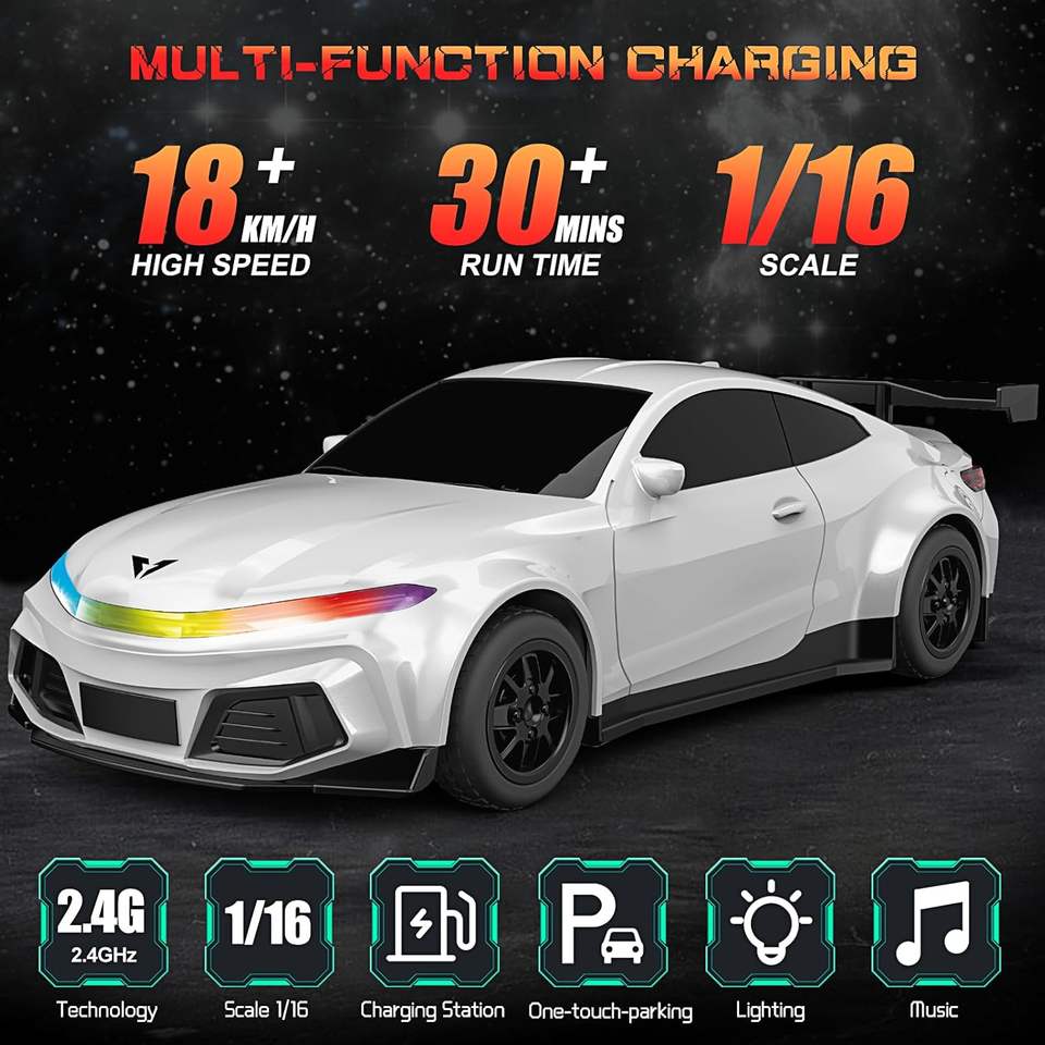 Voiture RC télécommandée 1:16, recharge Type C, nouvelle énergie, sportive, rapide, avec station de recharge, éclairage automatique, cadeau pour adultes