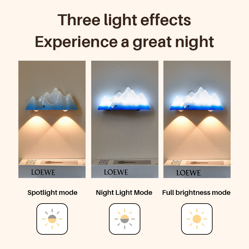 Lampe murale RGBW Montagne enneigée télécommandée, avec capteur de mouvement et rechargeable par USB, veilleuse LED à intensité variable pour chambre et salon
