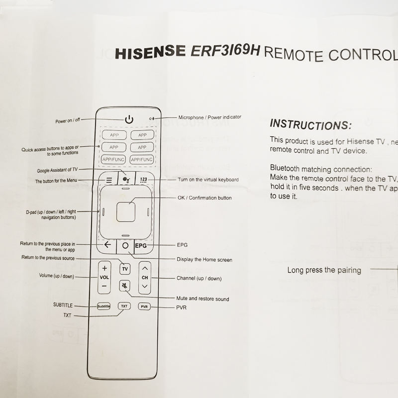 Remote Control for Hisen ERF3I69H 55RG 50RG LCD 4K TV with Voice Telecommande ForVU UHD Smart LCD LED TV