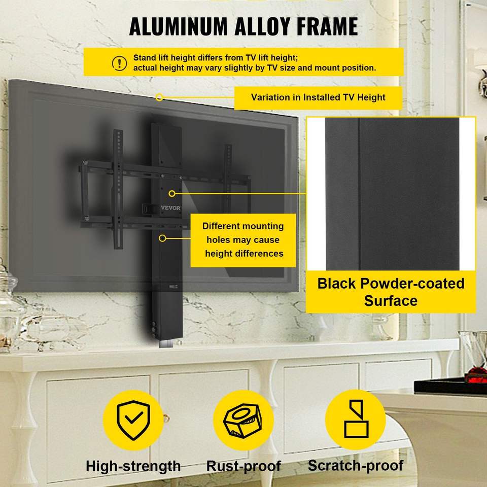 Support de télévision motorisé télécommandé à course de 28 pouces pour écrans de 50 pouces, hauteur réglable de 38 à 65 pouces, compatible avec supports et chariots TV