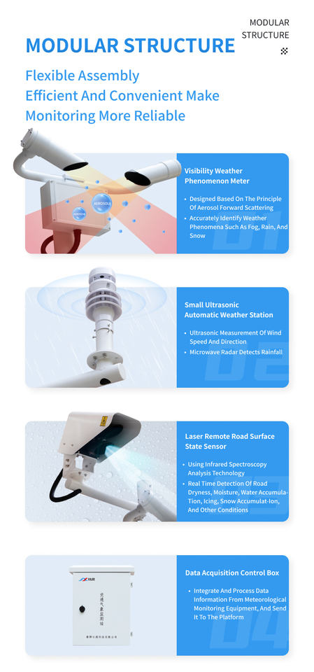 Station météo de surveillance à distance pour les routes, autoroutes, zones intérieures, rivières, voies navigables, zones montagneuses, viaducts et ponts