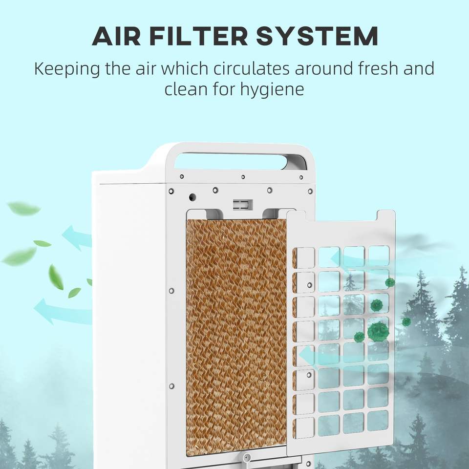 Ventilateur Rafraîchisseur d'Air Oscillant avec Télécommande et Packs de Glace, Humidificateur d'Eau pour Chambre, Ventilateur de Refroidissement par Glace