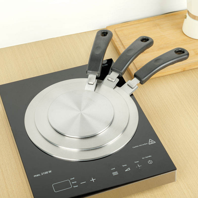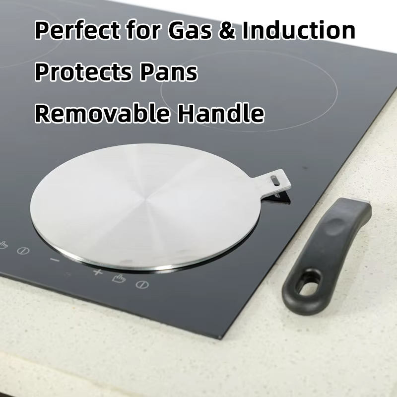 Plaque Adaptatrice Induction à Poignée Amovible 14/18/20/22cm, Diffuseur de Chaleur en Acier Inoxydable pour Table de Cuisson à Induction