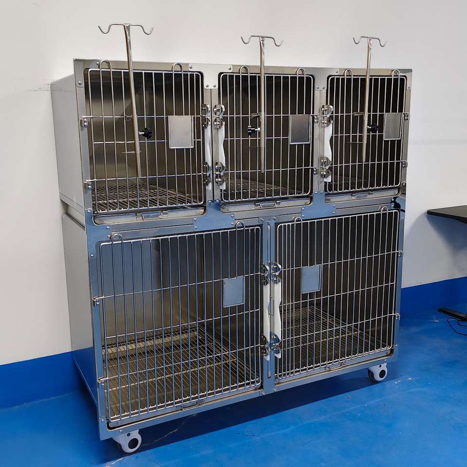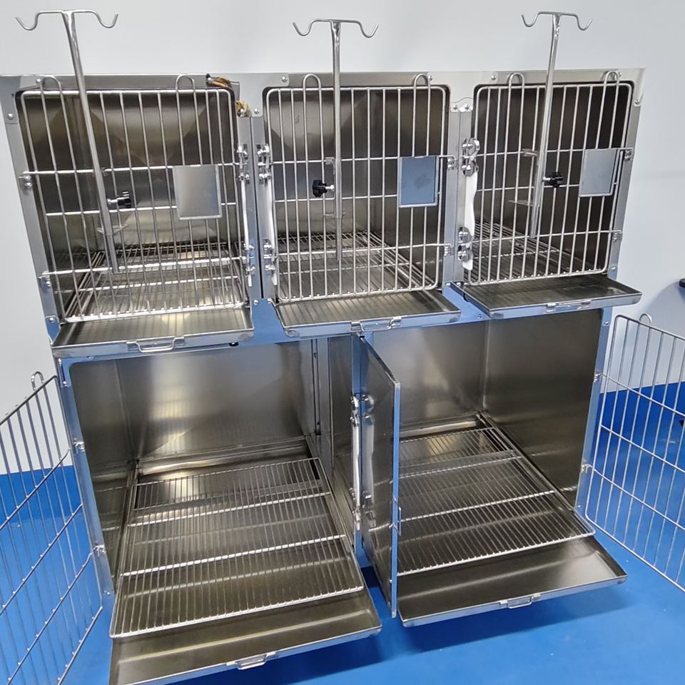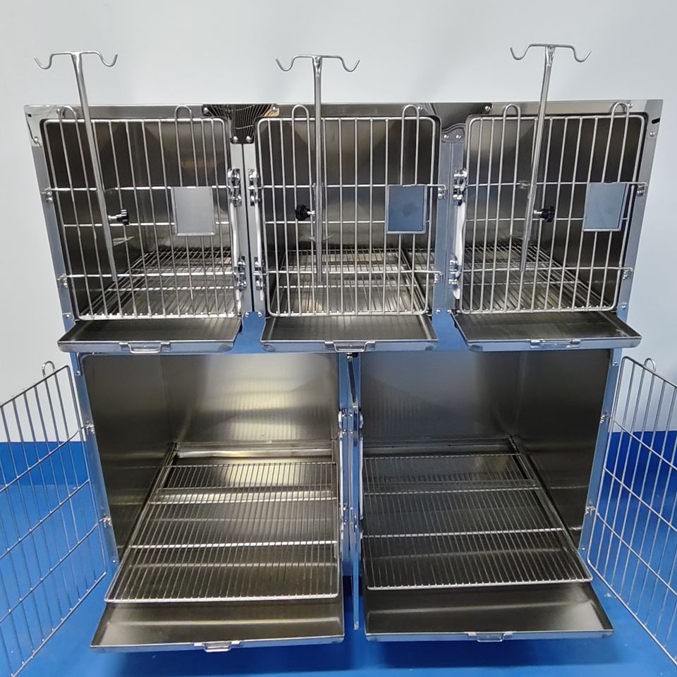 Cage multi-animaux à cloison amovible - Acier inoxydable 304 commercial, roues silencieuses, porte de cage autobloquante