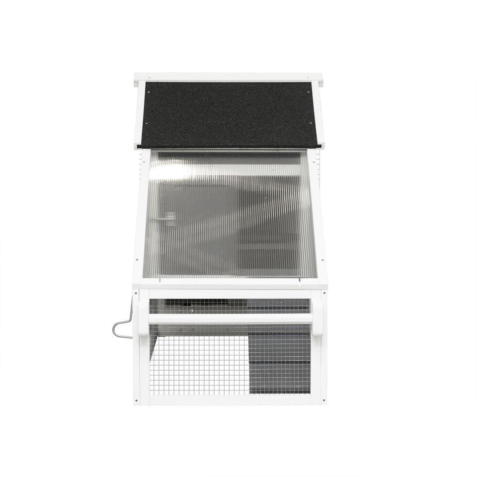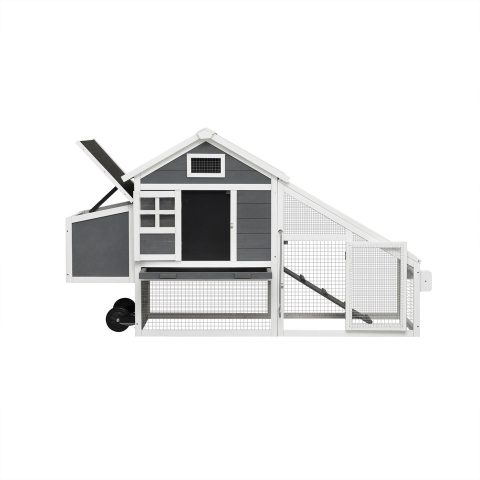 Poulailler d'extérieur carré en bois avec plateau en plastique amovible, motif uni, rampe, cage de course et roues, marque MSH