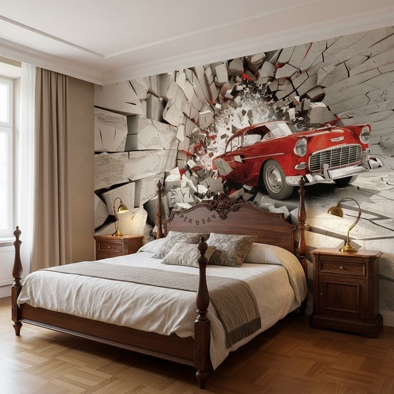 Papier peint de voiture imperméable amovible 3D en détresse gris blanc mur classique papier peint mural de voiture pour décoration murale de chambre à coucher