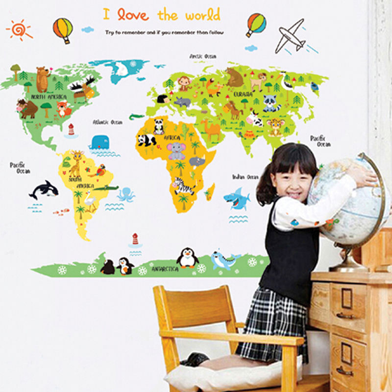 Autocollant mural 3d de carte du monde, sticker retirable, décoration pour la maison