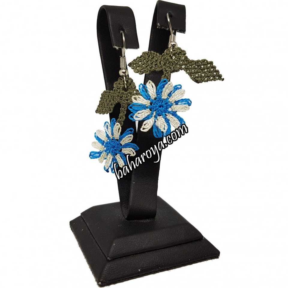 Renkli Papatya Küpe Sallantılı İğne Oyası Mavi Tonlu Moda Takılar