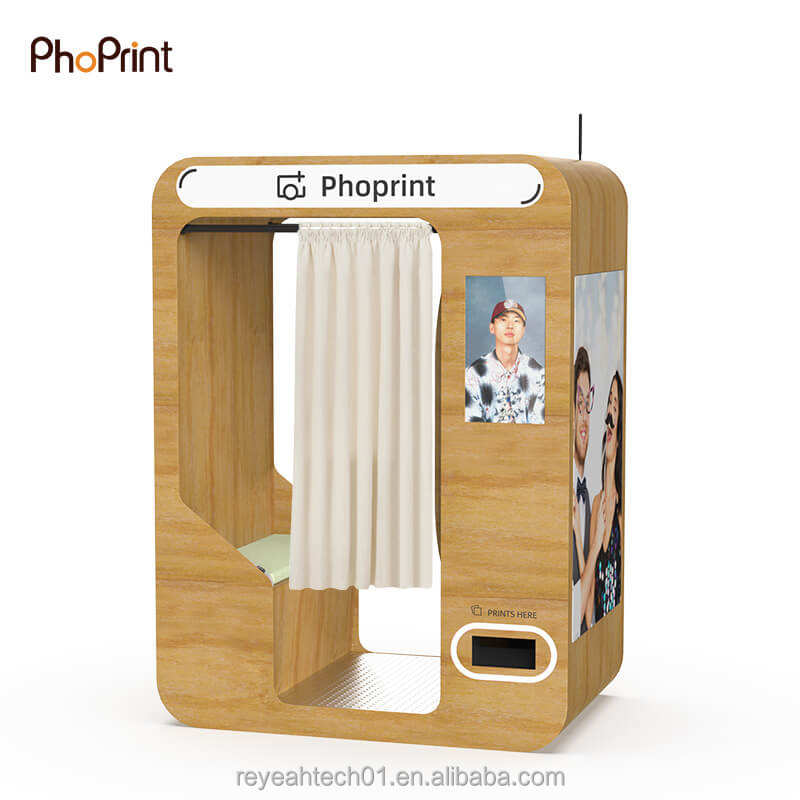 Location de photomaton en bois vintage à écran tactile de 18.5 pouces pour centre commercial
