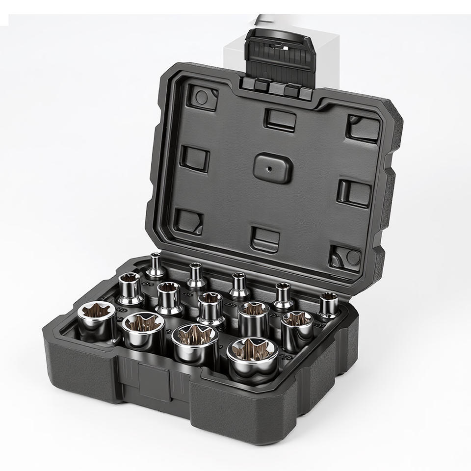 Jeu d'outils de réparation en matériau CRV, embouts Torx femelles E4 - E24, 14 pièces/jeu, avec adaptateurs 1/2 ", 3/8 ", 1/4 "