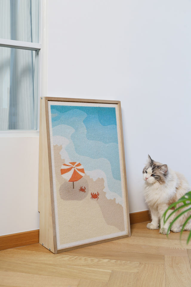 Peinture à l'huile sur toile remplaçable Design de plage Cadre en bois MDF Panneau de fibres de bois pour animaux de compagnie Scratching Board Toy Cat Sisal Scratcher