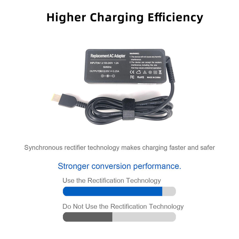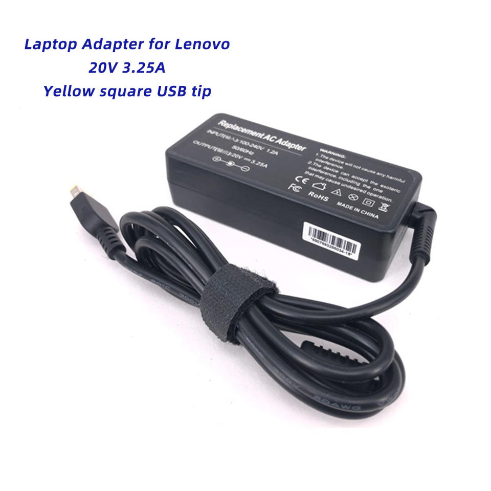 Chargeur d'ordinateur portable de remplacement 20V 3.25A 65W pour Lenovo Thinkpad T470 T470S T460 E531, adaptateur secteur, cordon d'alimentation, embout carré jaune