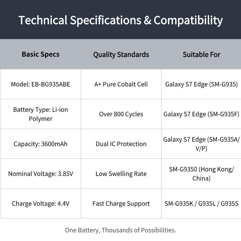 Batterie de remplacement EB-BG935ABE pour Galaxy S7 Edge G935F G9350 G935V G935A 3600mAh Li-ion Bateria