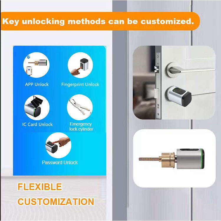Cylindre de serrure de porte à empreinte digitale de remplacement pour poignées standard américaines | Serrure intelligente sans clé | Solution de rénovation sans perçage