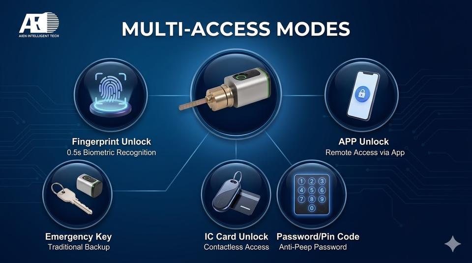 Empreinte digitale + Carte + Mot de passe + Application + Cylindre de serrure d'urgence