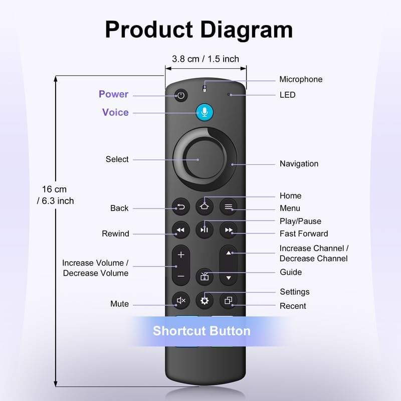 Télécommande vocale de remplacement pour Fire TV Cube/Stick compatible avec 4K Max/4K (1ère/2ème génération) (2ème/3ème génération)/Lite/HD