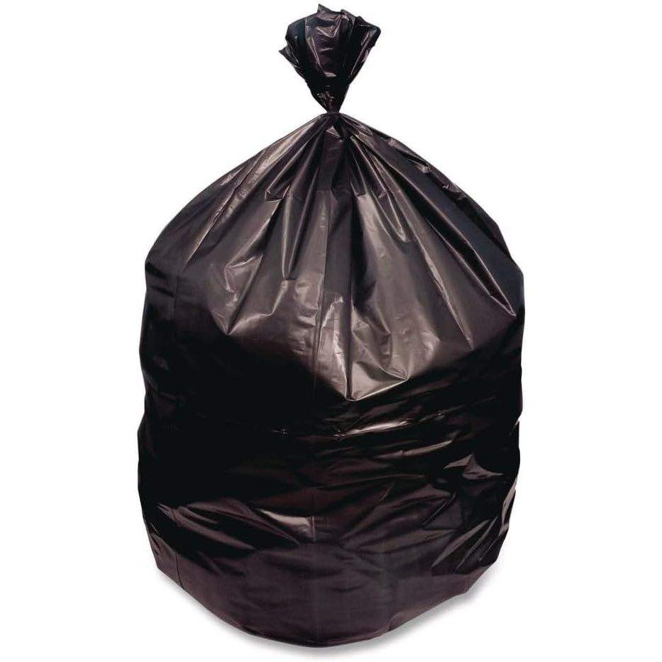 Sacs poubelles ménagers perforés noirs de 60 gallons, épaisseur 1,5 mil, 38 x 58, en rouleau de 100/sac, issus de résine recyclée
