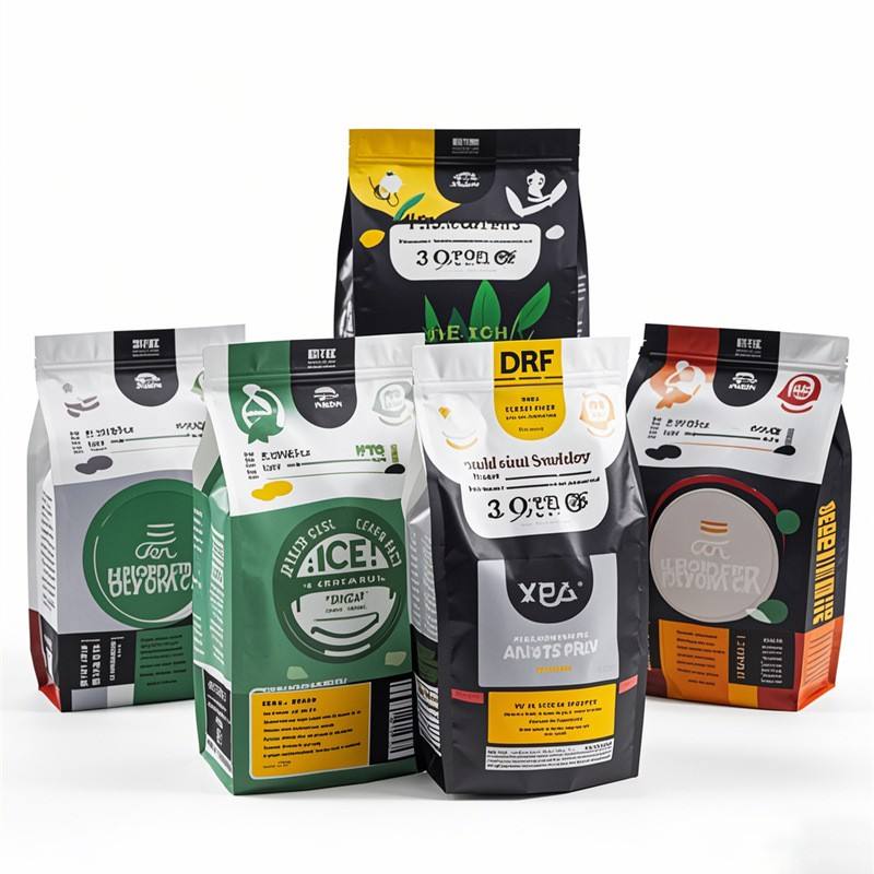 Sacs d'emballage en plastique à fond plat refermables avec huit côtés scellés, en PE, pour poudre de protéines, grains de café, fruits, céréales, avec fermeture éclair