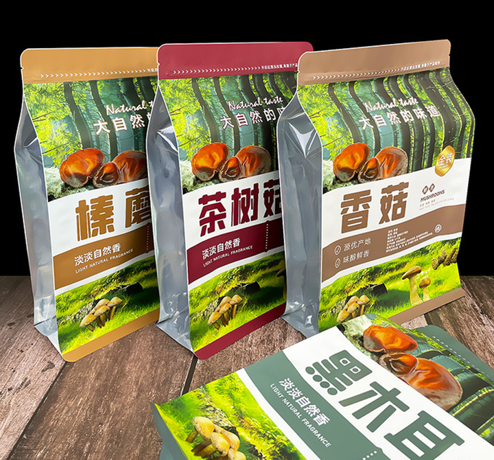 Sachet refermable en plastique anti-odeur avec fermeture éclair, pochette autoportante scellée sur huit côtés pour bonbons, aliments, thé, café, emballage avec fenêtre