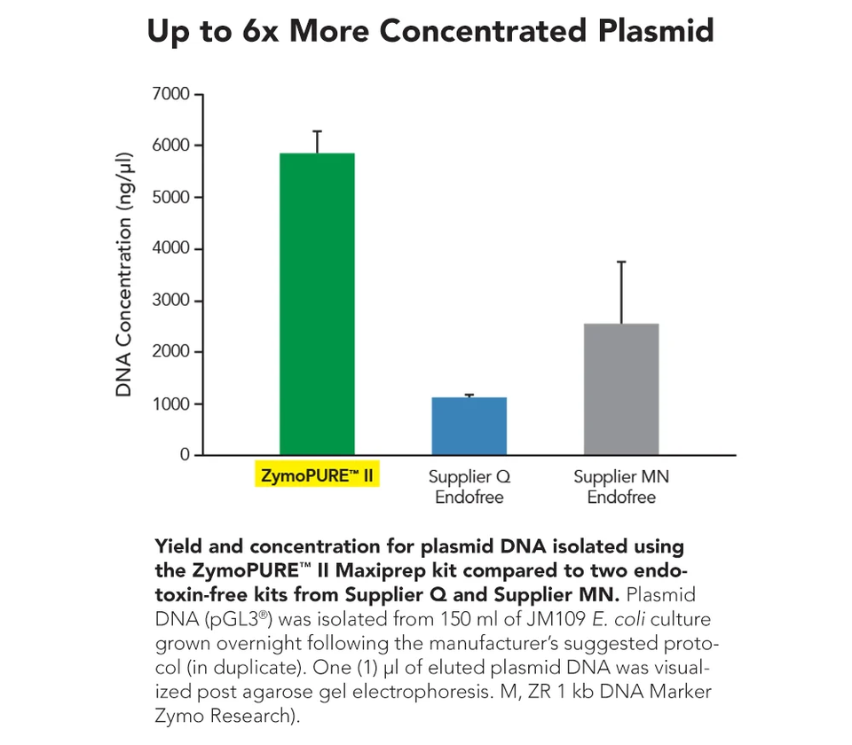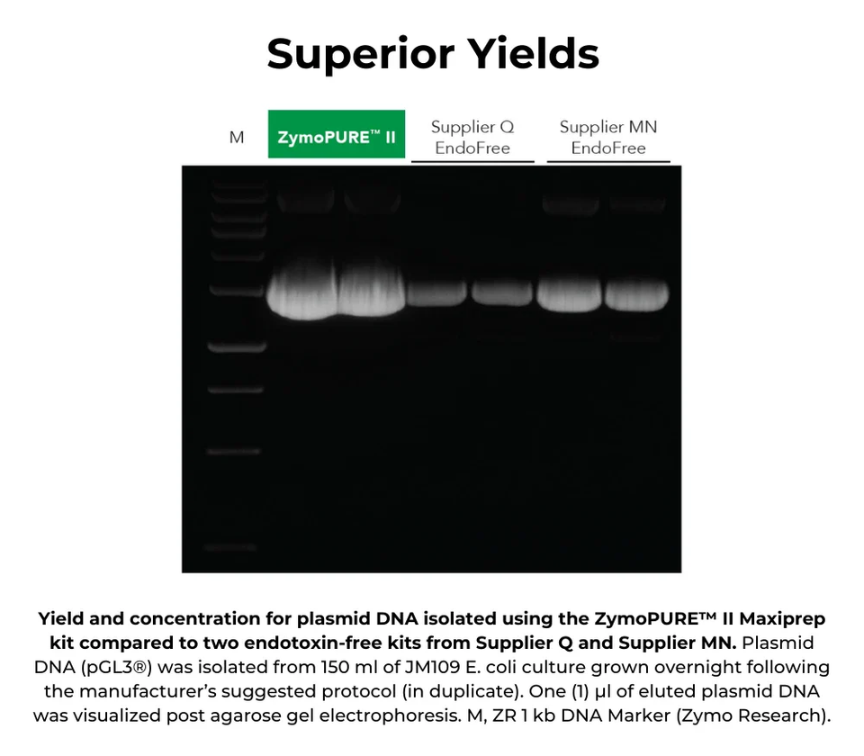 Kit de préparation de l'ADN ZymoPURE II de qualité recherche, ADN ultra-pur, idéal pour les applications sensibles (par exemple, microinjection)