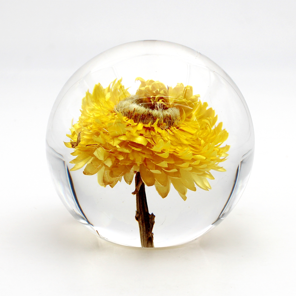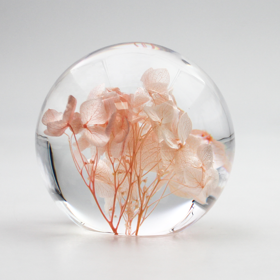 Boule en résine, hortensia rose, véritable fleur sèche, boule en résine avec fleur, boule de cristal en résine époxy solide