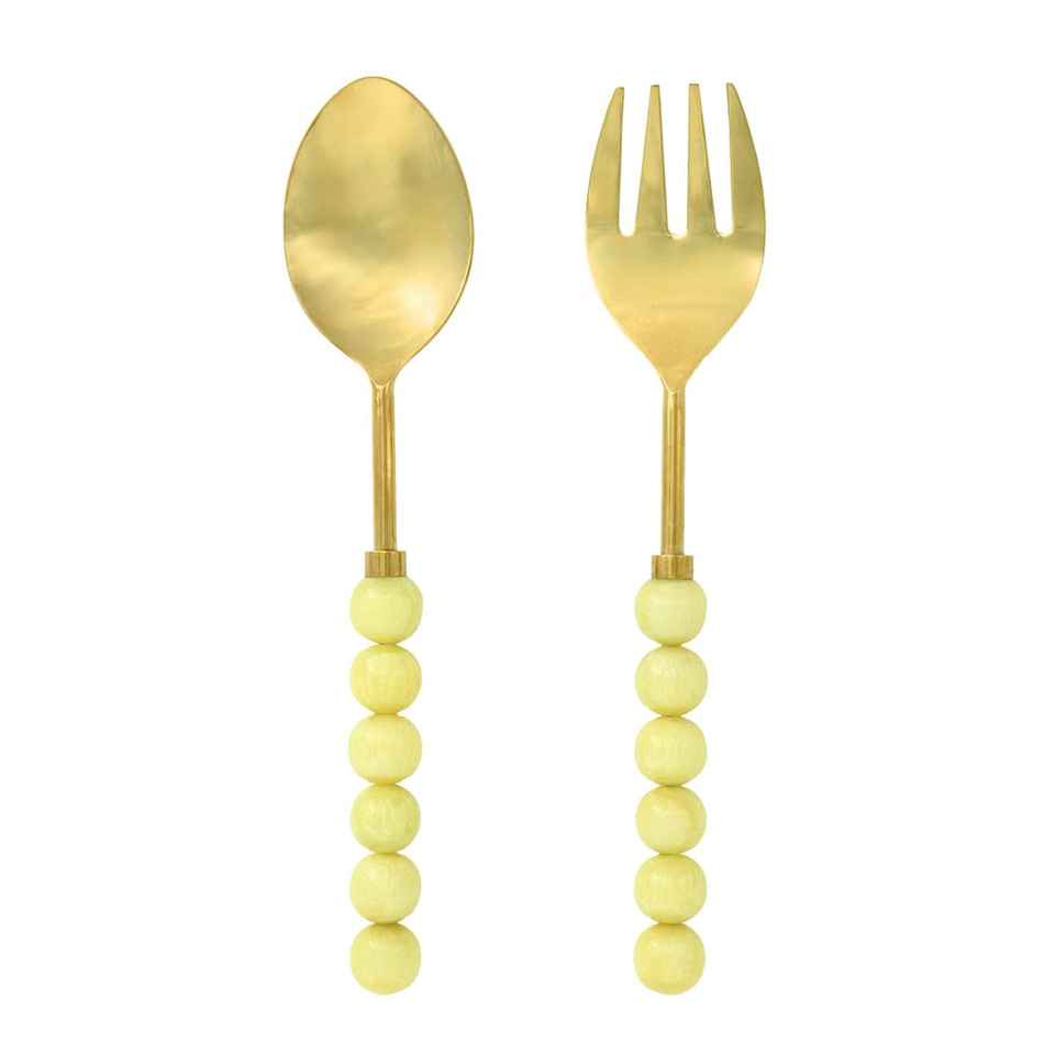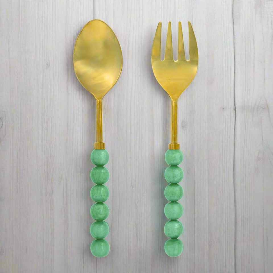 Ensemble de fourchettes en acier inoxydable faites à la main avec manche perlé en résine, plaqué or, design classique, réutilisables, écologiques, prix de gros