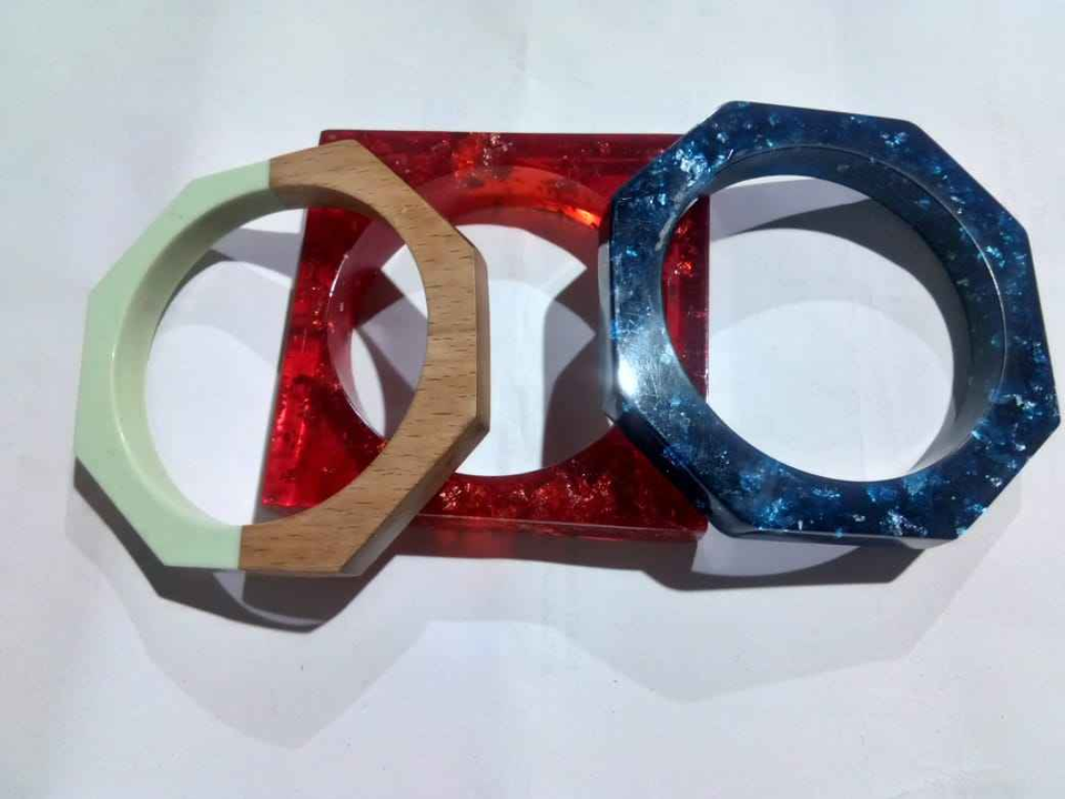 Bracelets en résine faits à la main, motif floral peint, manchette ronde noire et colorée, en vente