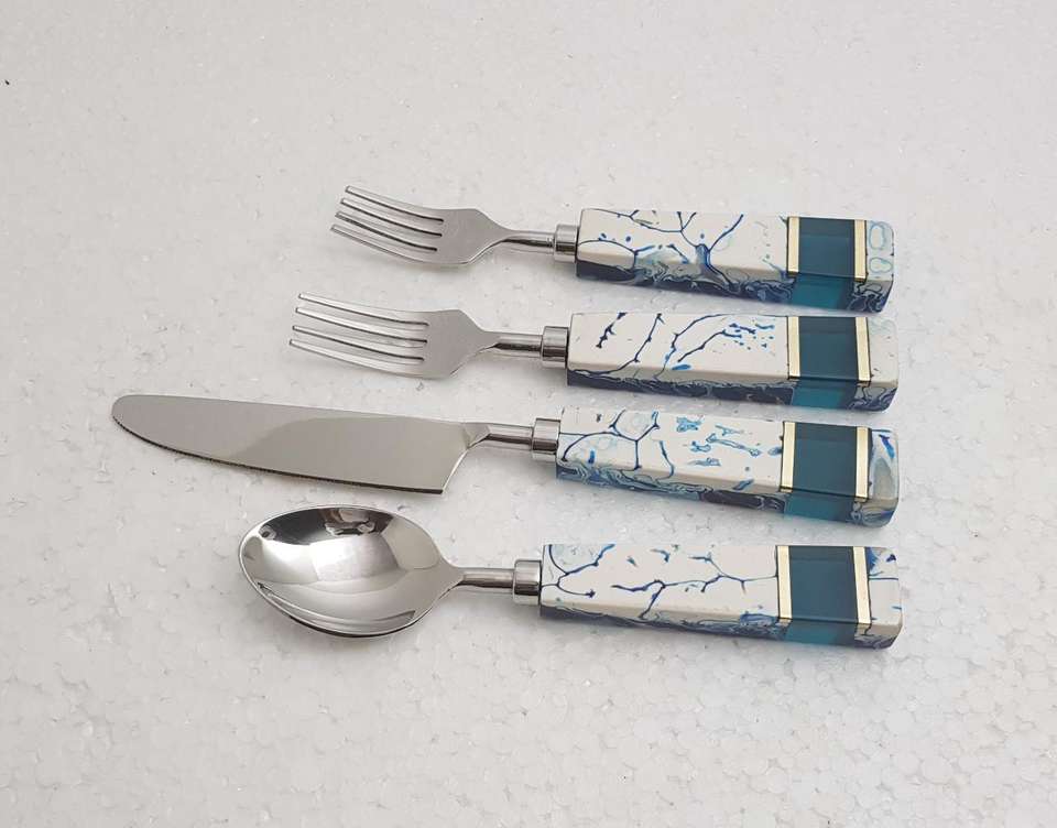 Resin Brass Inlay Handle Handmade Stainless Steel Flatware Set Best Quality Trending Modern Five Pieces Spoon Fork Dishwasher