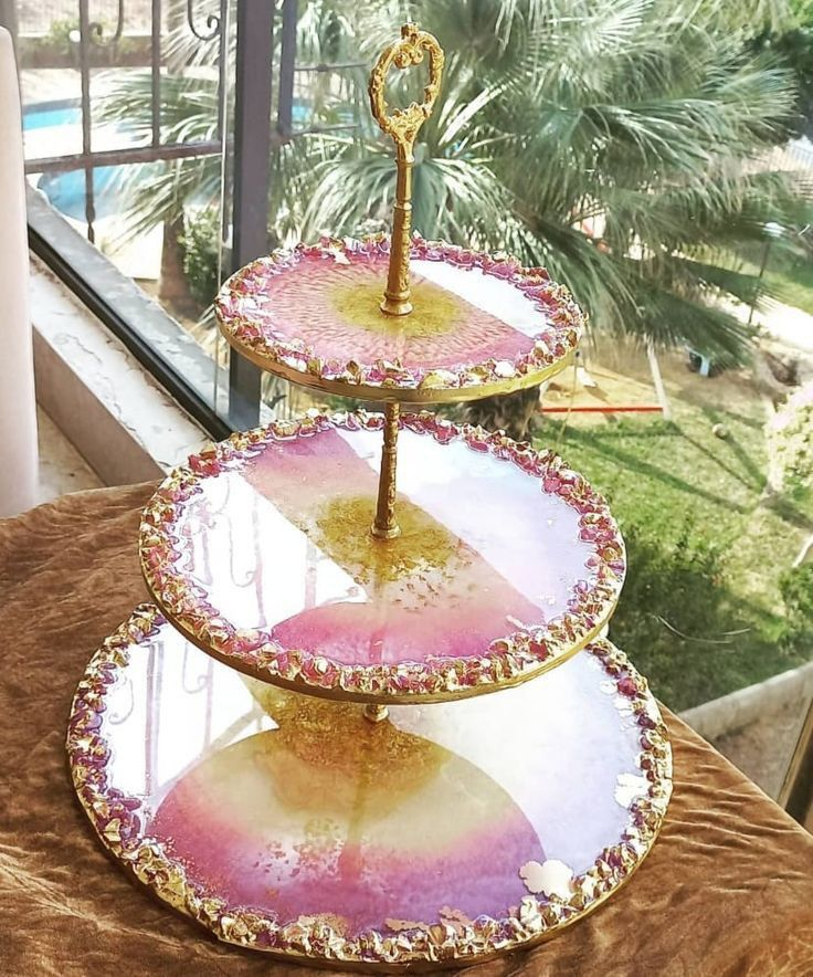 Support à gâteau en résine avec plateau de service et sous-verres, et support et couteau en métal pour la décoration de fête d'anniversaire