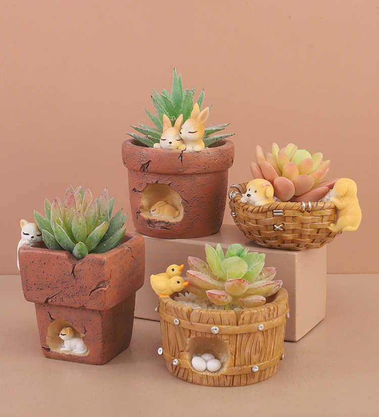 Résine dessin animé Animal succulent Micro paysage boîte de rangement décoration de bureau ornements petit Pot de fleur pour fournitures de jardin