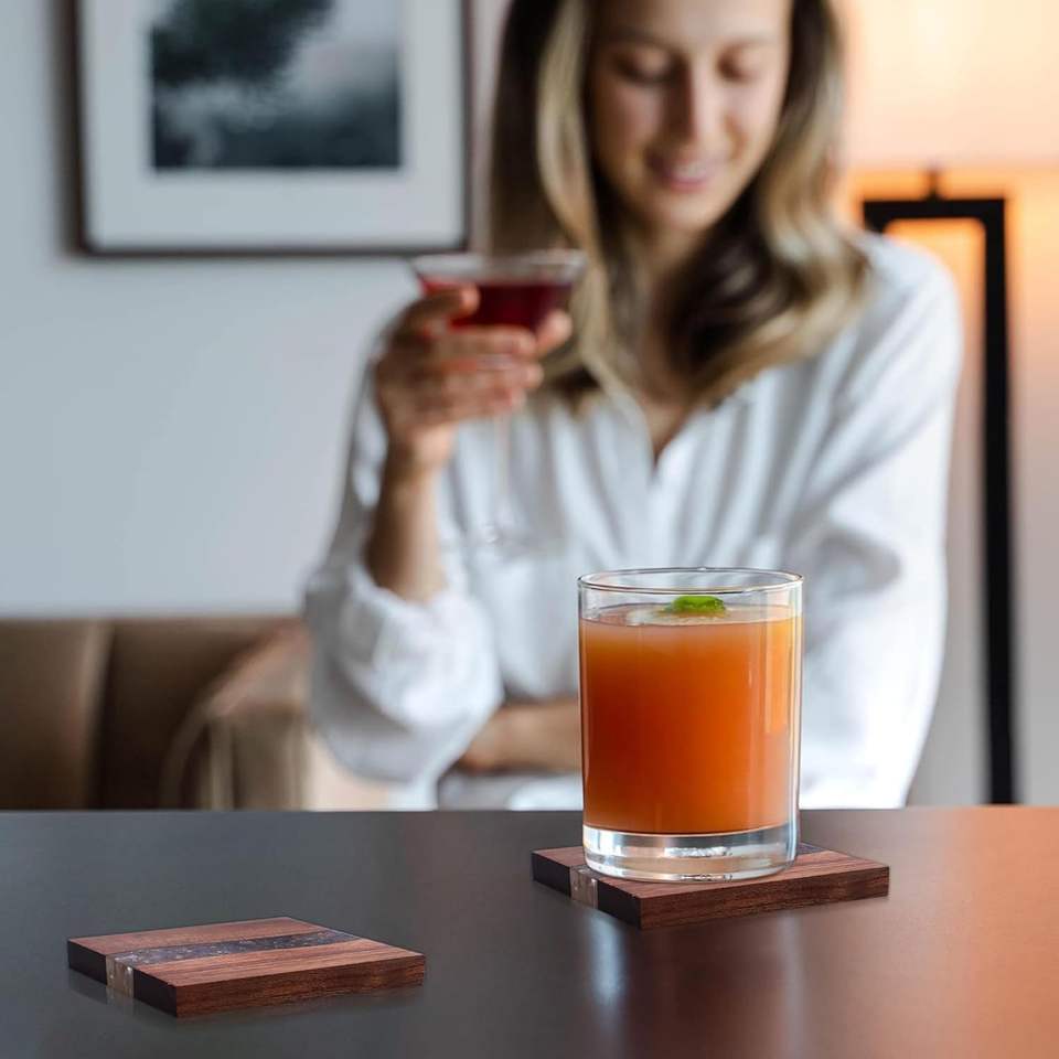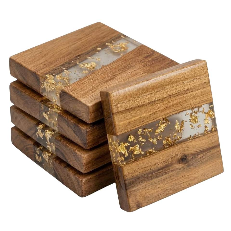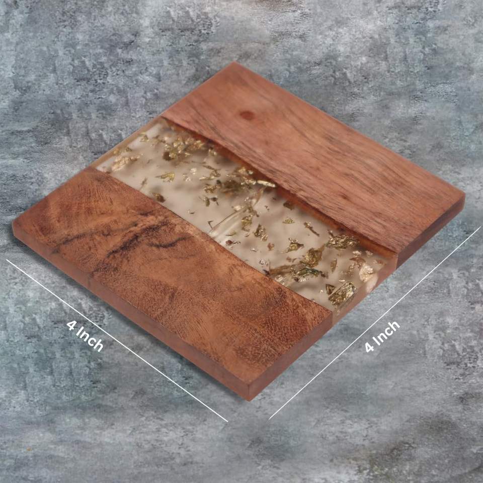 Sous-verres en résine de bois de qualité supérieure, dorés à la feuille d'or, faits à la main, carrés, épaisseur 10 mm, pour table à manger, tasses à thé/café, verres - Décoration de bar à domicile de luxe