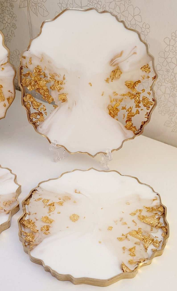 Sous-verres en résine en gros, personnalisables en couleur/design, impression UV, durables, décoration de la maison et de la cuisine pour les repas de luxe et les boissons