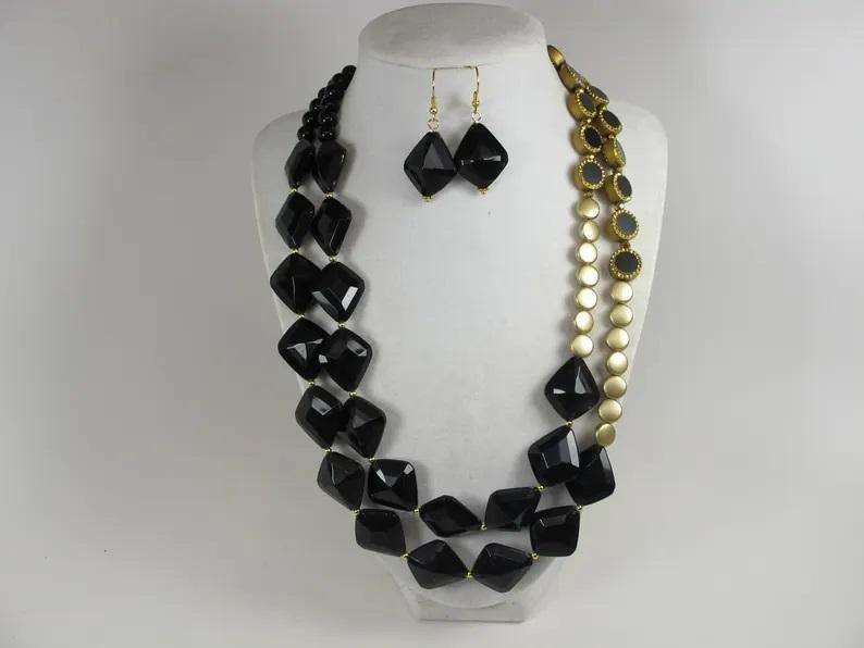 Collier bib tendance multicouche en résine et perles acryliques pour femme, fait main, style exagéré, avec boucles d'oreilles assorties