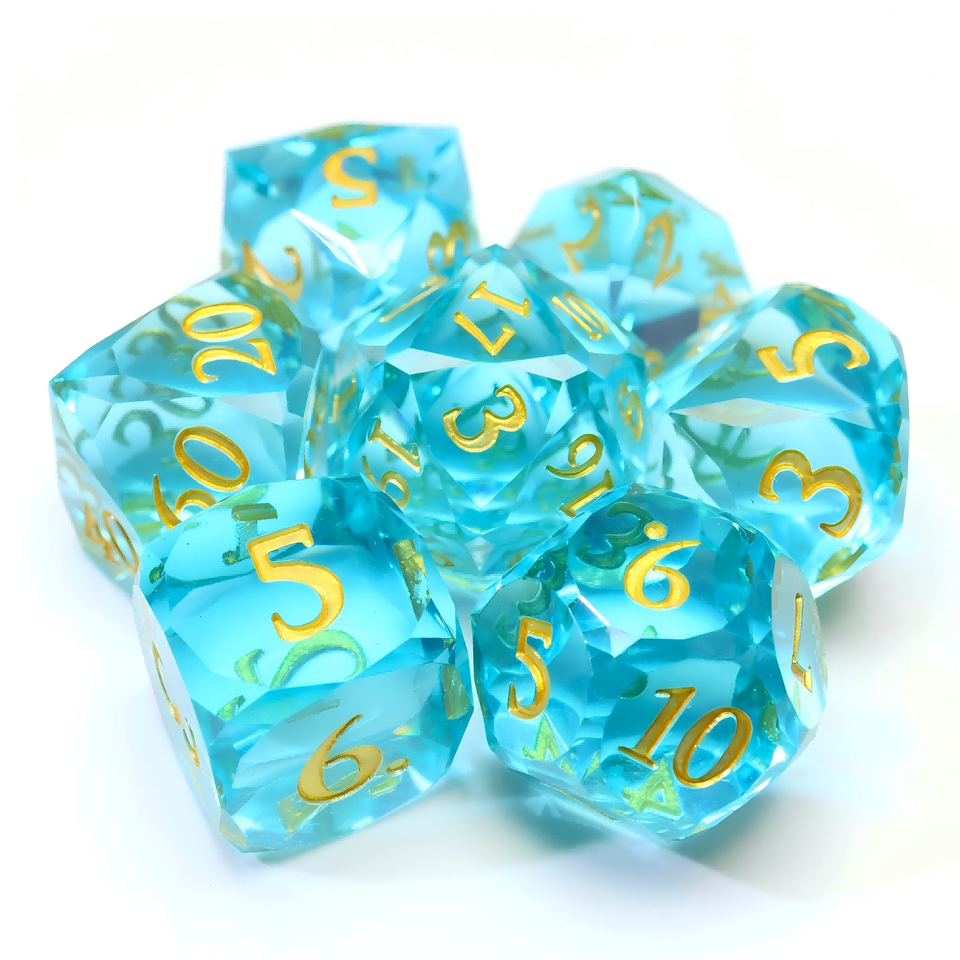 Ensemble de dés à arêtes diamantées en résine, dés DND RPG bleu droit, fabricant de dés personnalisés OEM, approvisionnement en gros
