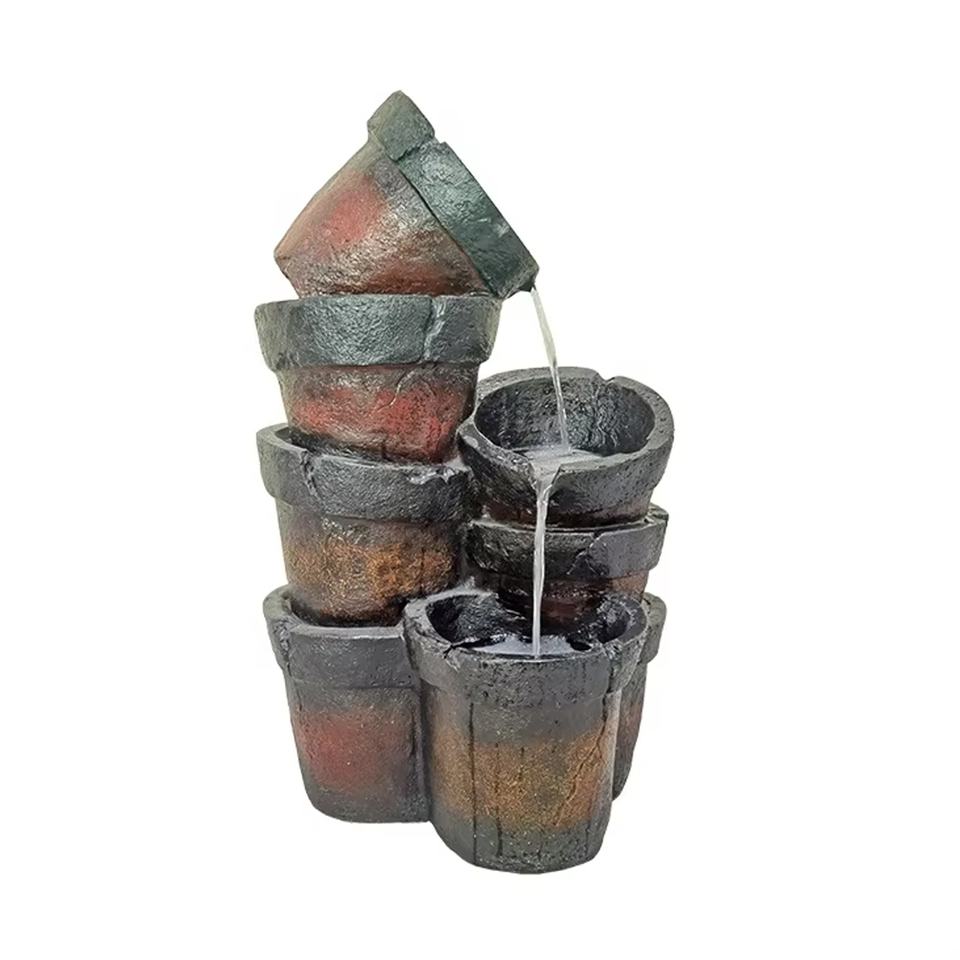 Fontaine d'eau extérieure en résine décorative de jardin avec éclairage LED, étanche, au design moderne, autoportante pour cour ou balcon
