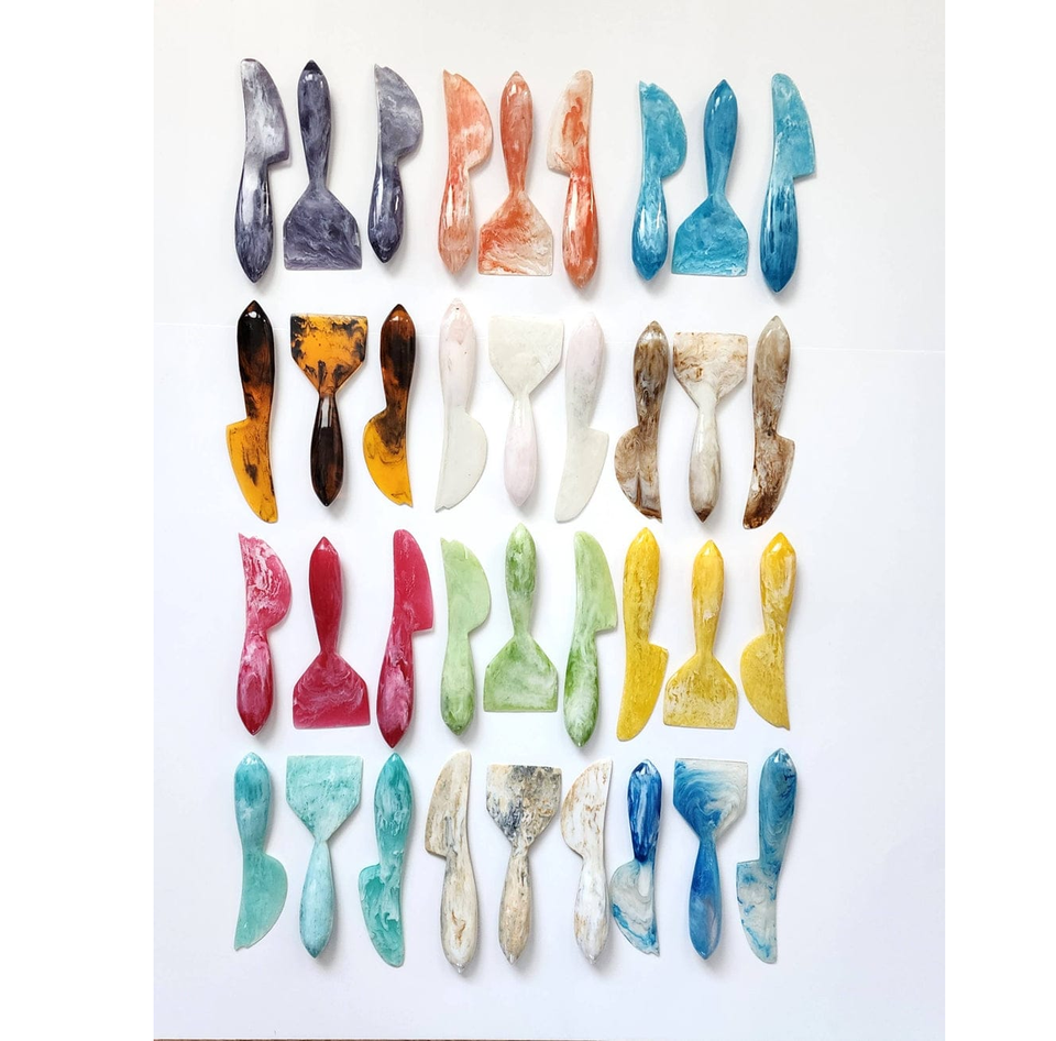 Ensemble de couteaux à fromage avec manche en résine, ensemble de couteaux à fromage en résine époxy, ensemble de couteaux à fromage en résine avec manche