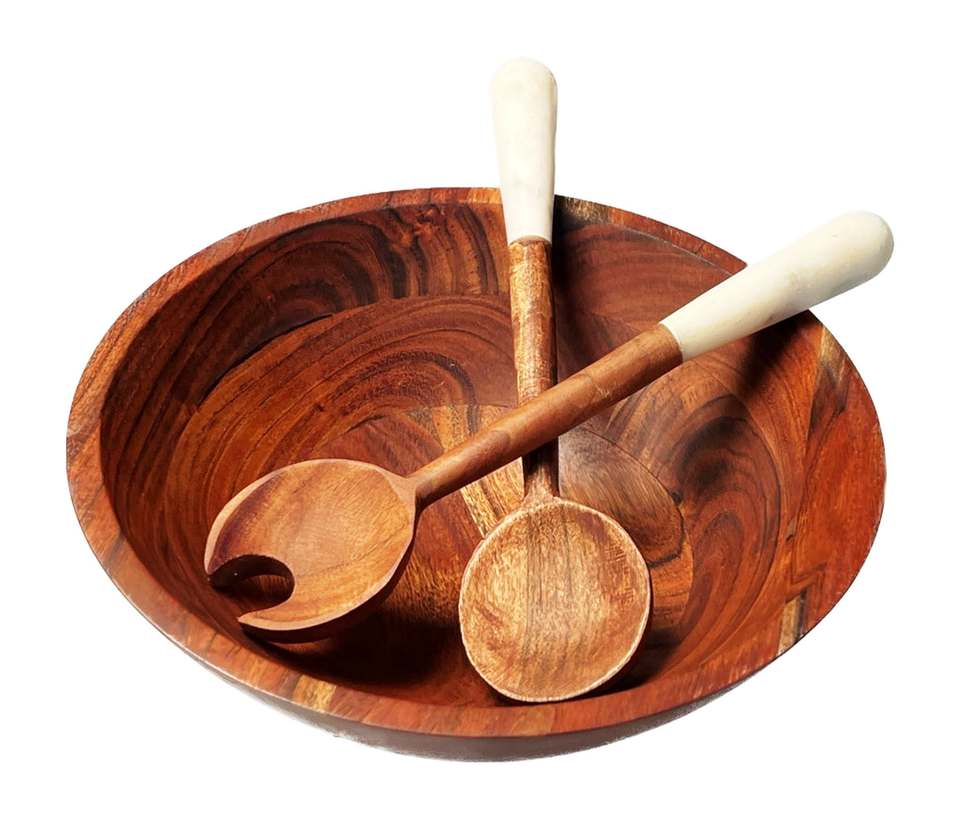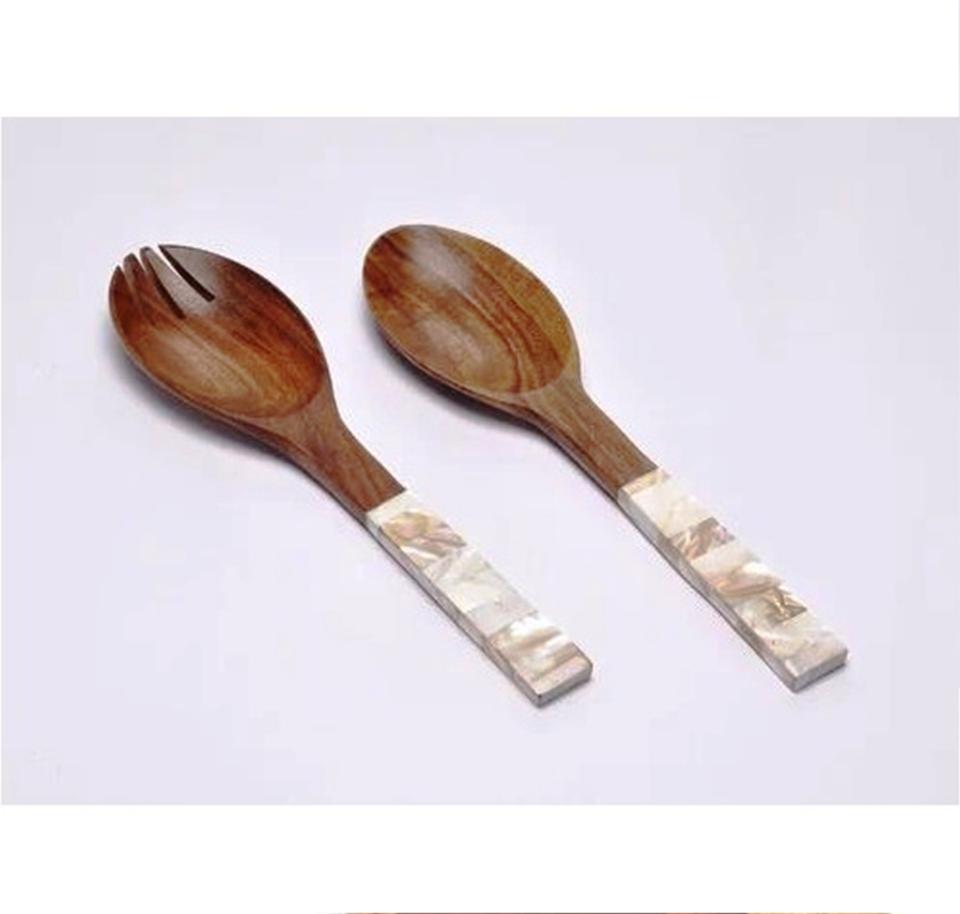 Ensemble de serveurs à salade avec manche en résine, ensemble d'outils de cuisine en bois de mangue d'acacia naturel disponible en Inde