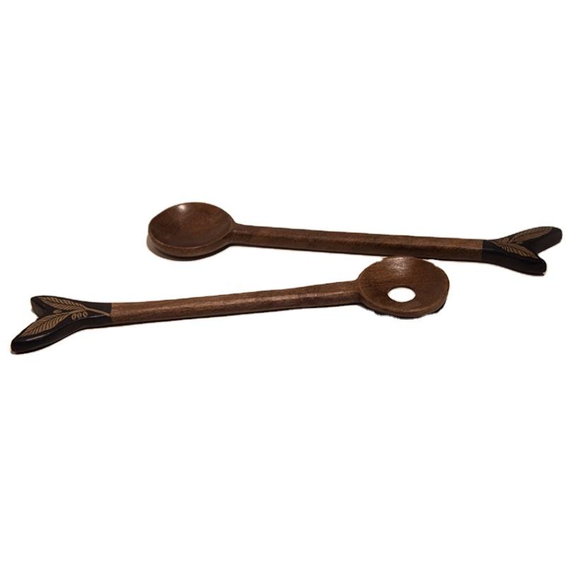 Ensemble de serveurs à salade avec manche en résine, ensemble d'outils de cuisine en bois de mangue d'acacia naturel disponible en Inde
