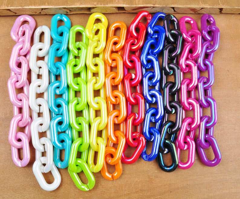 Collier long en résine à maillons larges, style moderne, mélange de couleurs, punk, creux, épais, pour décoration murale, fait main, anniversaire
