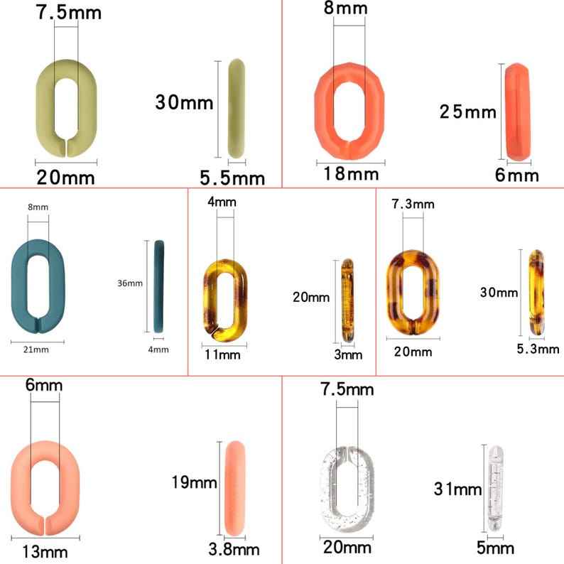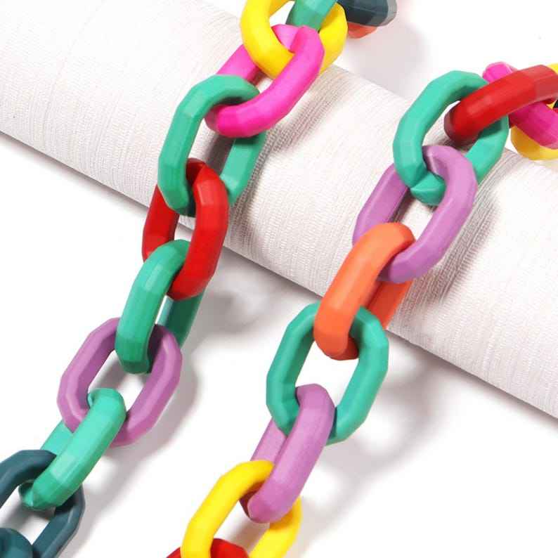 Chaîne longue massive en résine, maillons grands et creux, style moderne, mélange de couleurs, punk, multi-pièces, artisanale, pour décoration d'anniversaire et de maison