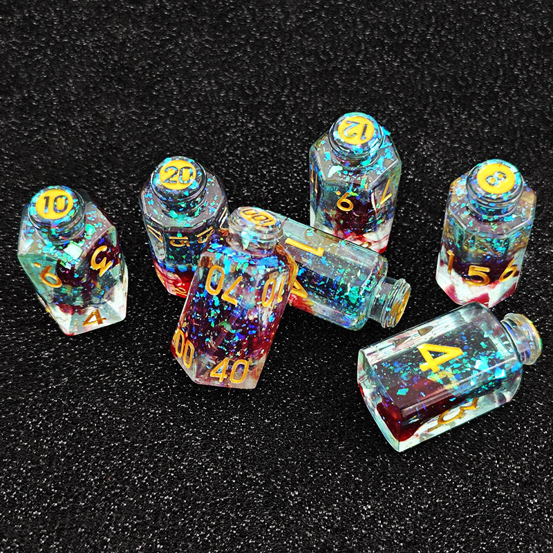 Bouteille de potion magique en résine, dés élémentaires pour RPG, dés de jeu de table Dungeons & Dragons, dés polyédriques en résine DND