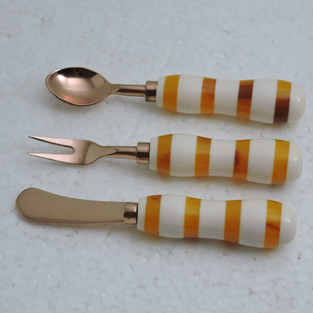 Ensemble de couverts en résine et métal incrusté et en acier inoxydable avec cuillère, fourchette et couteau plaqués or rose, ensemble de vaisselle