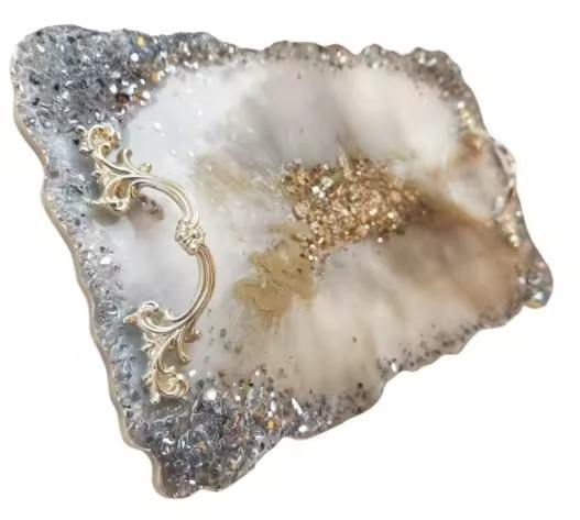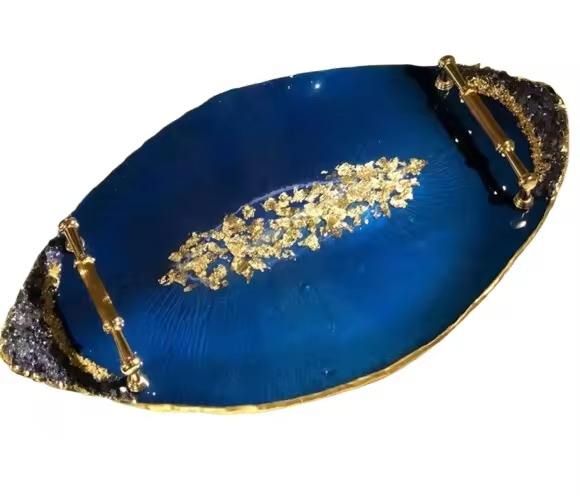 Plateau en résine bleu marine avec poignée dorée et organisateur décoratif polyvalent à paillettes pour la cuisine et la vanité