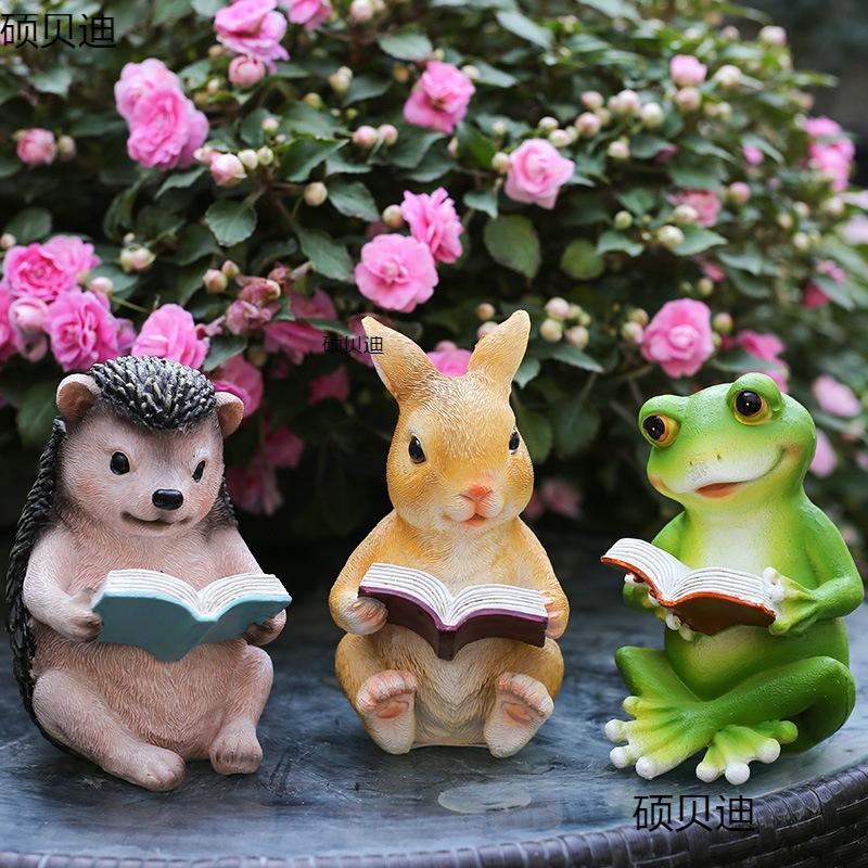 Figurine de lapin en résine, lisant un livre, décoration de jardin extérieur, ornement de patio, forme animale peinte, autoportante
