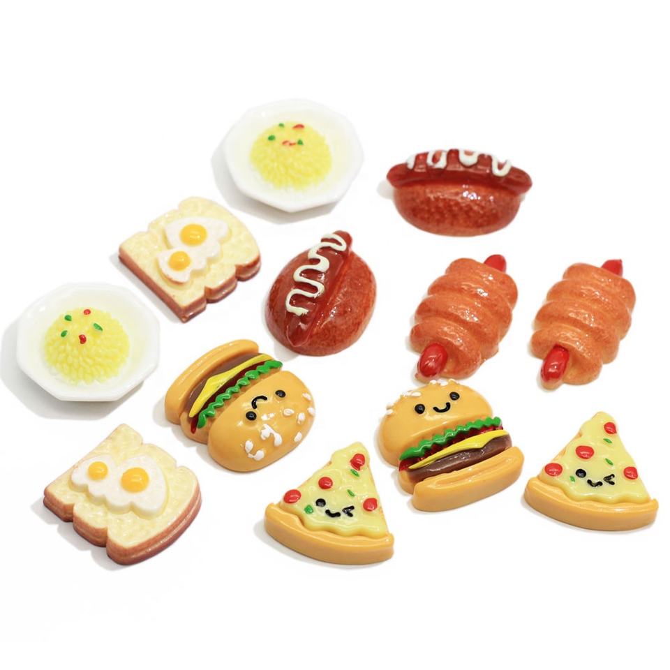 Figurines artificielles de nourriture, 60 pièces, éléments décoratifs de Table pour la maison, hamburger chaud, Pizza, Cabochon à dos plat
