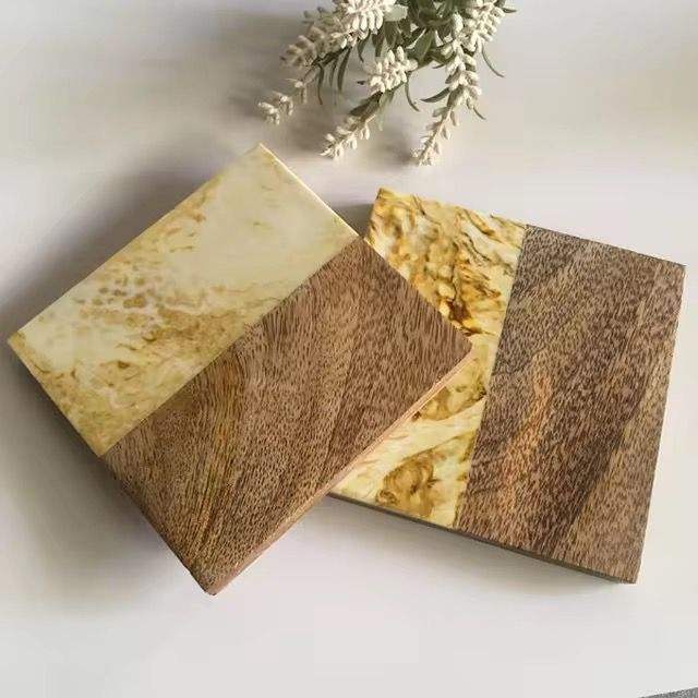Vaisselle en résine Meilleure vente Promotion personnalisée Sous-verre vierge en résine de couleur bois et vert avec support