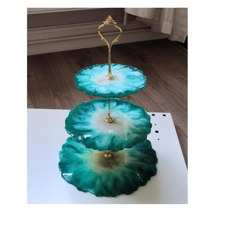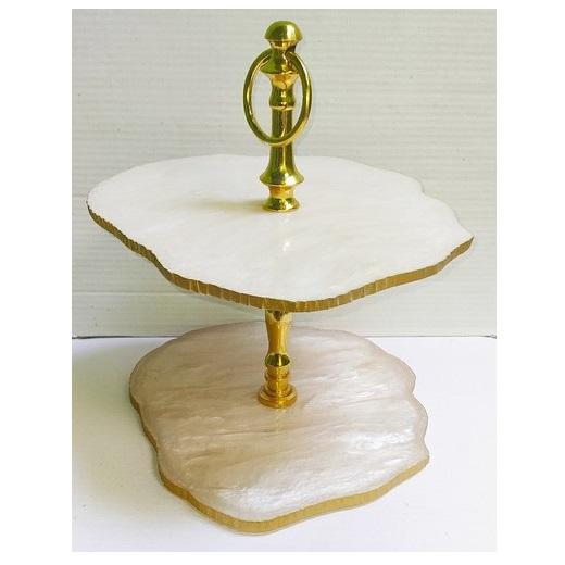 Support à gâteaux en résine plaquée or, 2 niveaux, avec plateau en marbre naturel, base pour décoration de mariage et de fête